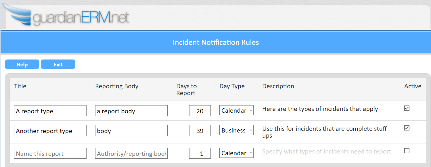 Reportable Incident Types are used to flag an incident as reportable to an external authority or reporting body.